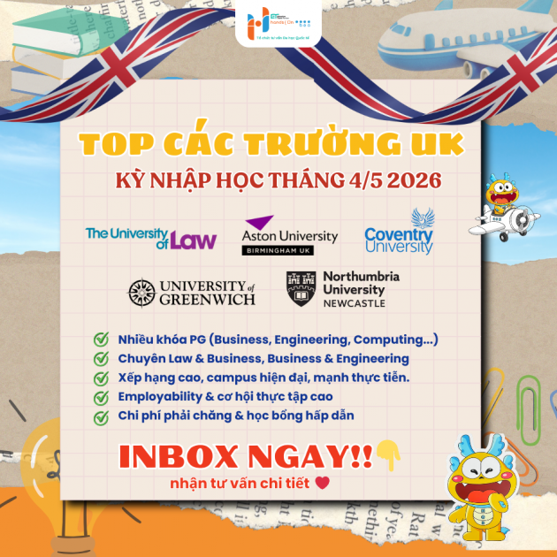 Nếu bạn đã lỡ kế hoạch nhập học trước đó, kỳ nhập học tháng 4–5/2026 chính là lựa chọn phù hợp để tiếp tục hành trình du học UK với mức độ cạnh tranh thấp hơn và nhiều chương trình chất lượng.