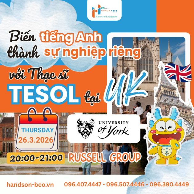 Sẽ không có gì lý tưởng hơn khi bạn học TESOL ngay tại Vương quốc Anh – đặc biệt là tại University of York (UK). Tuần này, bạn sẽ có cơ hội gặp trực tiếp giảng viên TESOL của trường trong buổi webinar tuần này: