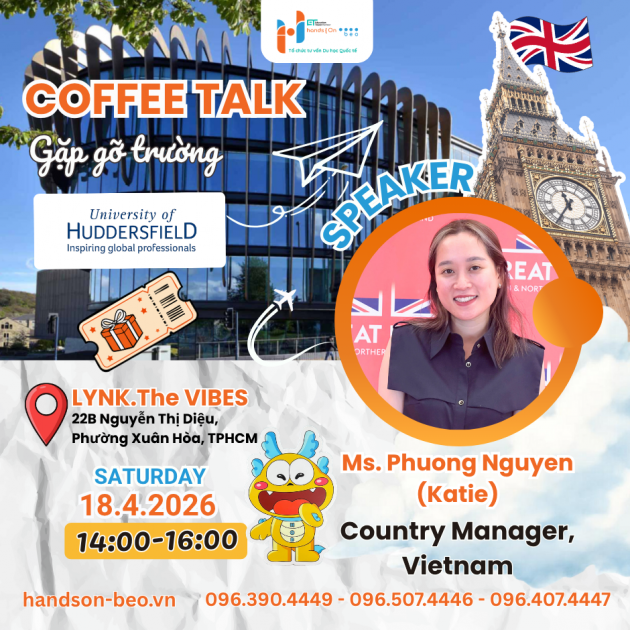 👉 Nếu bạn muốn săn học bổng và nhận sự hỗ trợ trực tiếp từ đại diện University of Huddersfield, bạn hãy dành chút thời gian ghé ngay coffee talk tuần này: