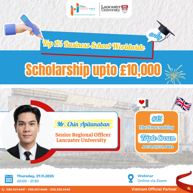 💰 Học bổng lên đến £10,000 – giúp bạn tiết kiệm đáng kể chi phí, chỉ còn khoảng ~520 triệu đồng/ năm học
